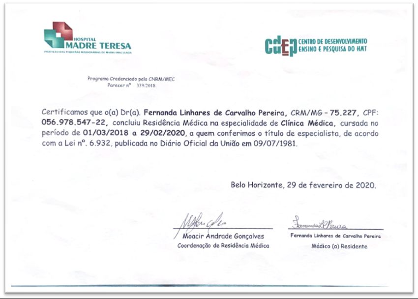 Olá, sou a Dra Fernanda Linhares, médica Pneumologista, me formei em Medicina na Universidade Federal de Ouro Preto (UFOP) e fiz minhas duas especialidades (Pneumologia e Clínica Médica) no Hospital Madre Teresa em Belo Horizonte. Sou também Mestra em Cuidados Paliativos pela Faculdade de Medicina do Porto em Portugal