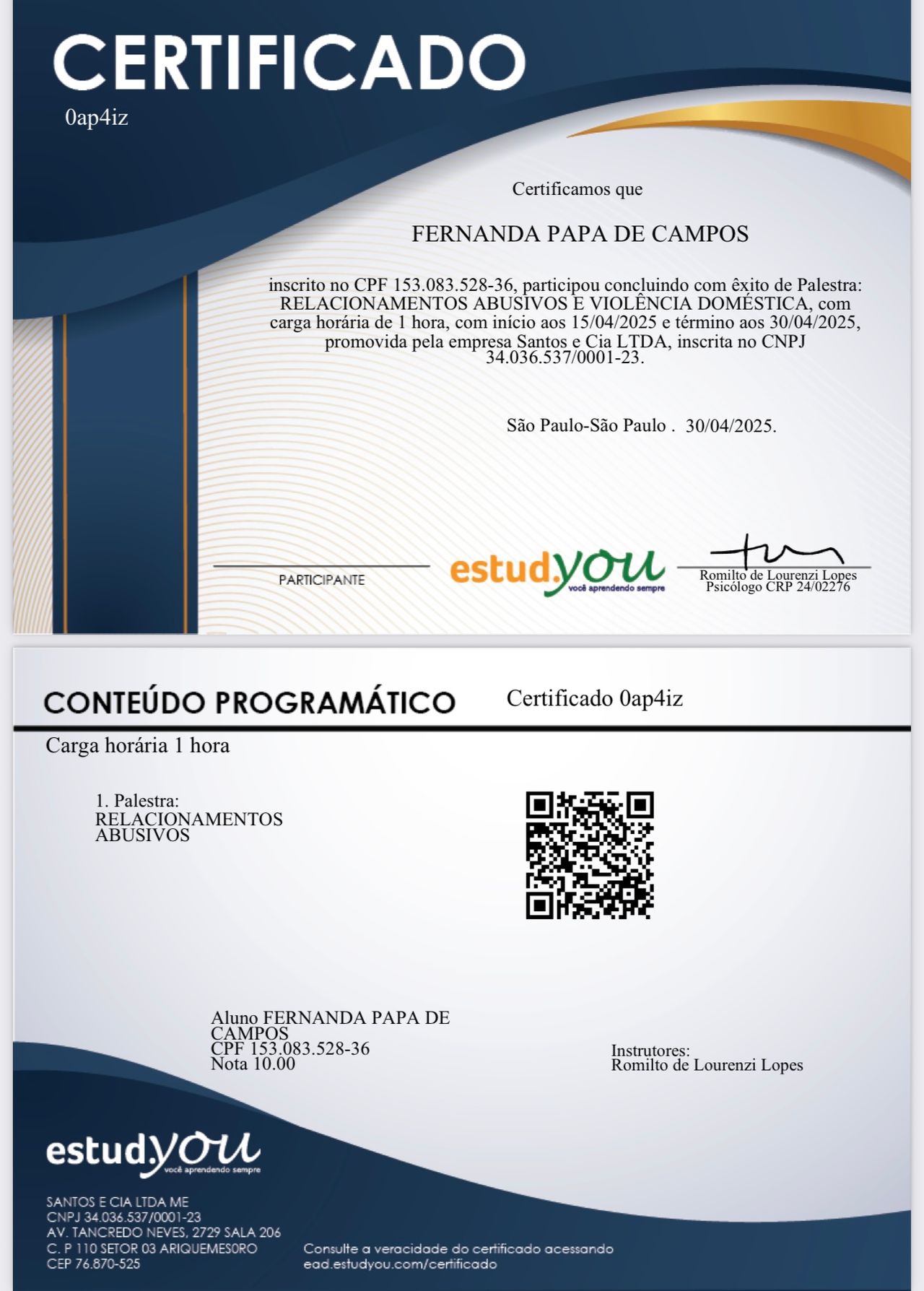 Número de registro: CRP SP 215076
