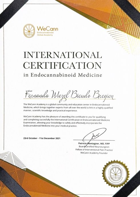 Possuo ainda formação em Psiquiatria por meio de pós-graduação (sem RQE) e estou habilitada para prescrição de cannabis medicinal, conforme os critérios legais e científicos atuais.
