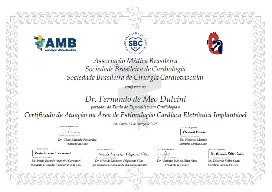 Quais são as principais especialidades de Fernando de Meo Dulcini?Fernando de Meo Dulcini é cardiologista, médico clínico geral. Te mostramos alguns dos serviços oferecidos pelo especialista graças à sua trajetória e vasta experiência: Consulta cardiologista.