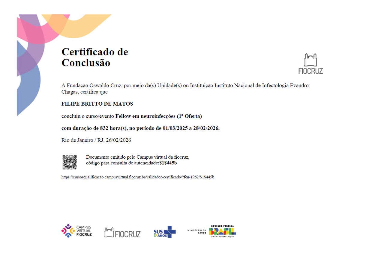 Sou médico neurologista pela Universidade Federal do Rio de Janeiro (HUCFF/UFRJ), onde também realizei graduação em Medicina. Possuo especialização em Neuroinfecções (Fellowship) realizada na Fundação Oswaldo Cruz (Fiocruz). Atuo com dedicação no diagnóstico, tratamento e acompanhamento de doenças que afetam o sistema nervoso, como enxaqueca, epilepsia, doença de Parkinson, Alzheimer, AVC, entre outras condições neurológicas. Meu trabalho é pautado pela escuta atenta e pelo compromisso com a melhoria da qualidade de vida dos meus pacientes. Prezo pela prática da medicina centrada na pessoa, sempre buscando partilhar as decisões com quem está sob meus cuidados, respeitando seus aspectos culturais e sociais; entendendo seus desejos e expectativas; e promovendo o conhecimento acerca das condições de saúde em questão. Estou à disposição para oferecer um atendimento humanizado, baseado na ciência e na responsabilidade com a sua saúde neurológica.