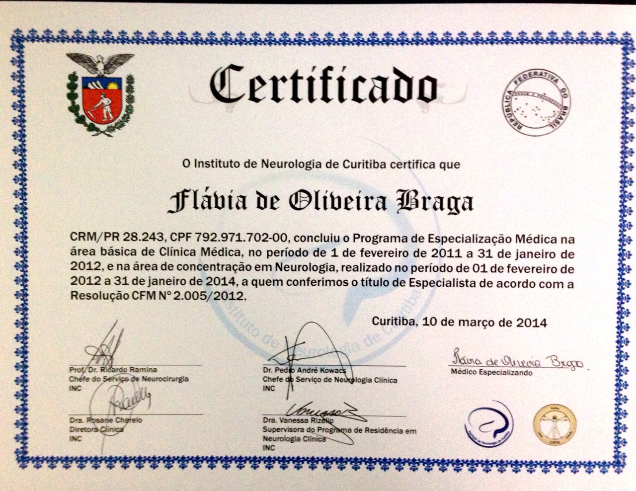 Sou Dra. Flávia de Oliveira Braga, neurologista (CRM-AM 6391 | RQE 6489), formada pela Universidade Federal do Amazonas (UFAM) e com residência médica em Neurologia pelo Instituto de Neurologia de Curitiba (INC).