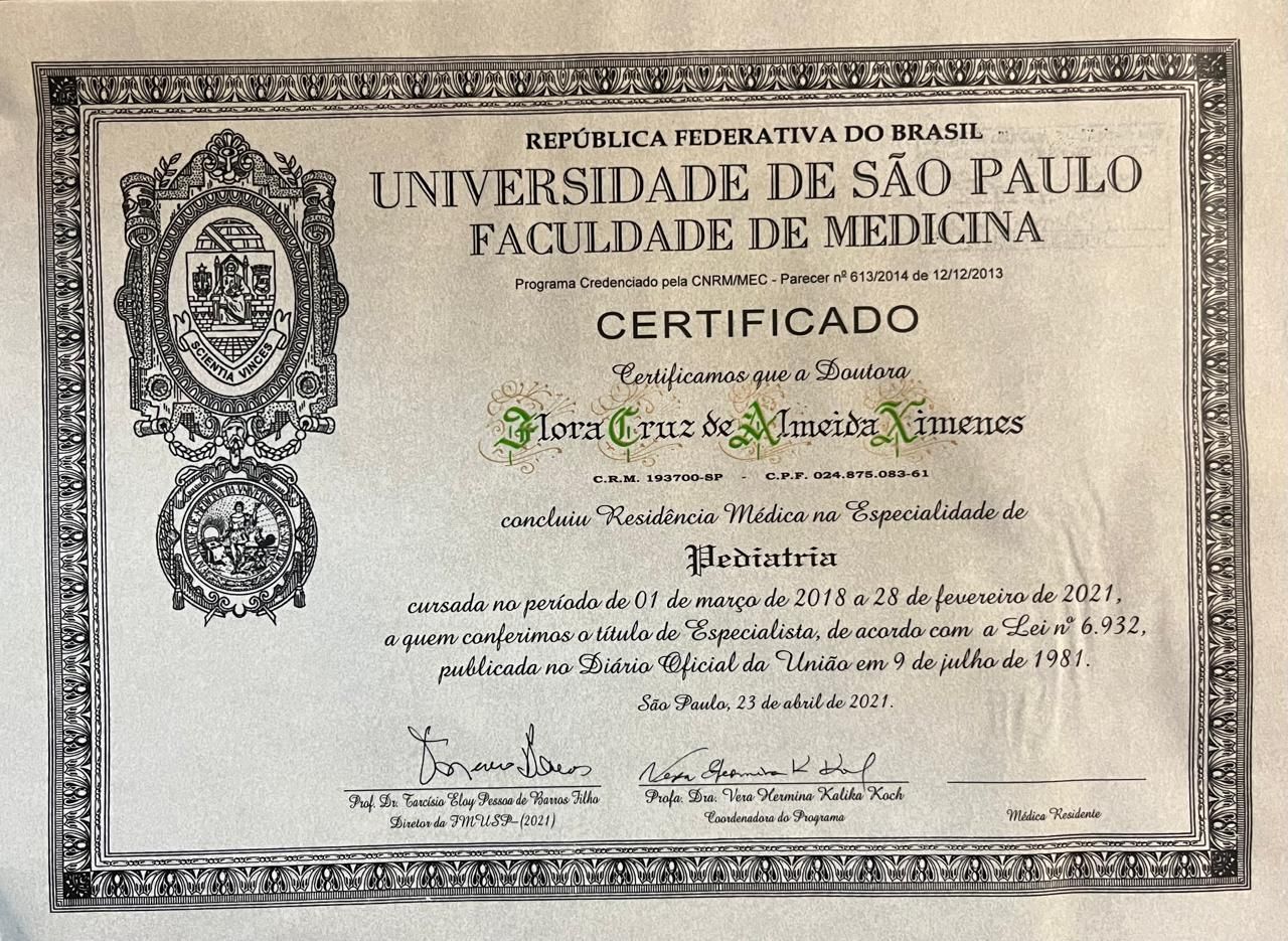 Residência em Pediatria pela Universidade de São Paulo (USP);