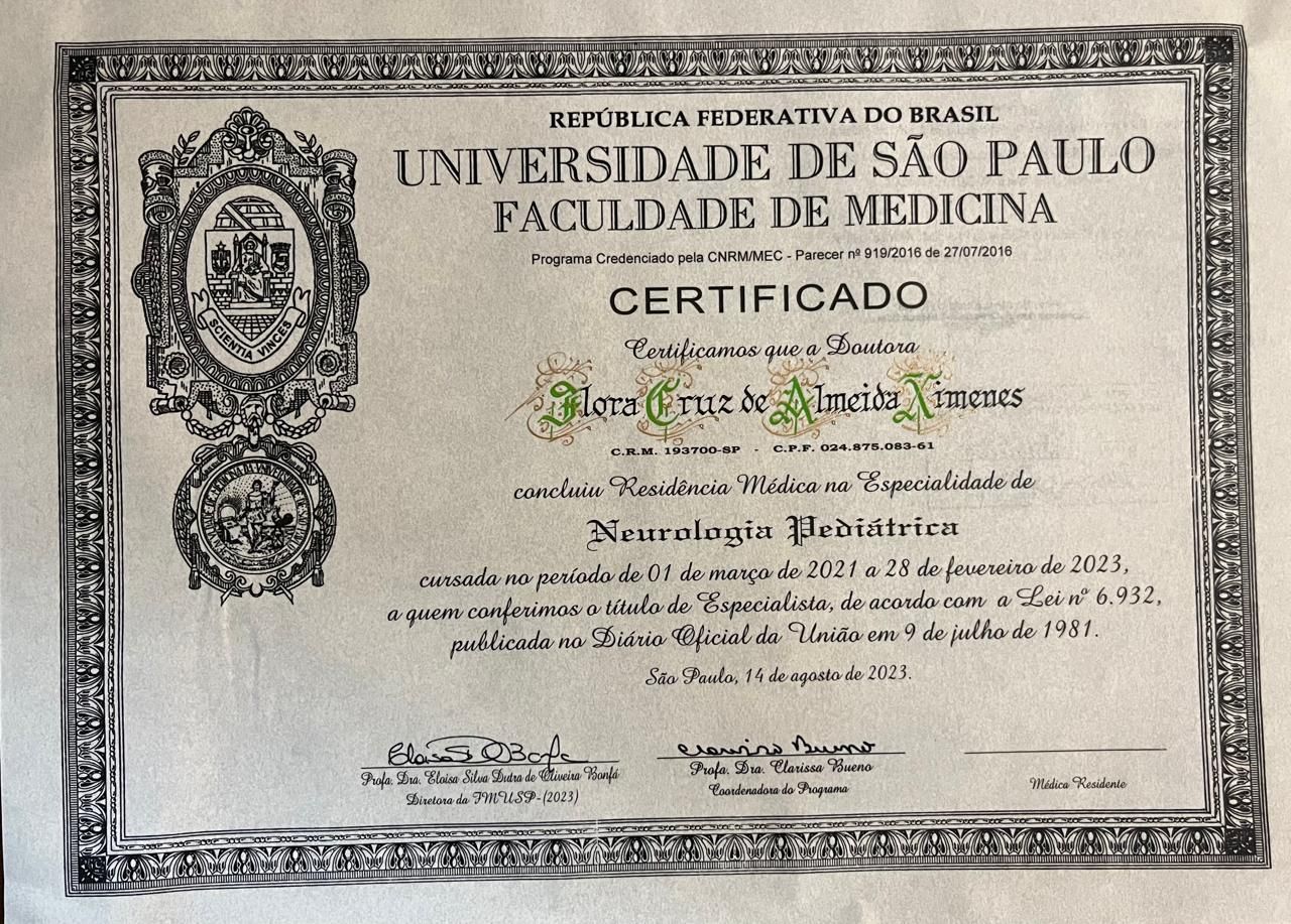 Residência em Neurologia Infantil pela Universidade de São Paulo (USP);