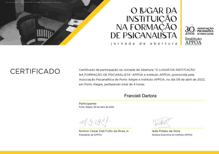 Sou psicóloga clínica (CRP 07/43105), formada pela PUCRS (Pontifícia Universidade Católica do Rio Grande do Sul) e membro associada da Sigmund Freud Associação Psicanalítica, onde atualmente realizo formação em psicanálise, um percurso que sustenta e aprofunda continuamente a minha escuta clínica.