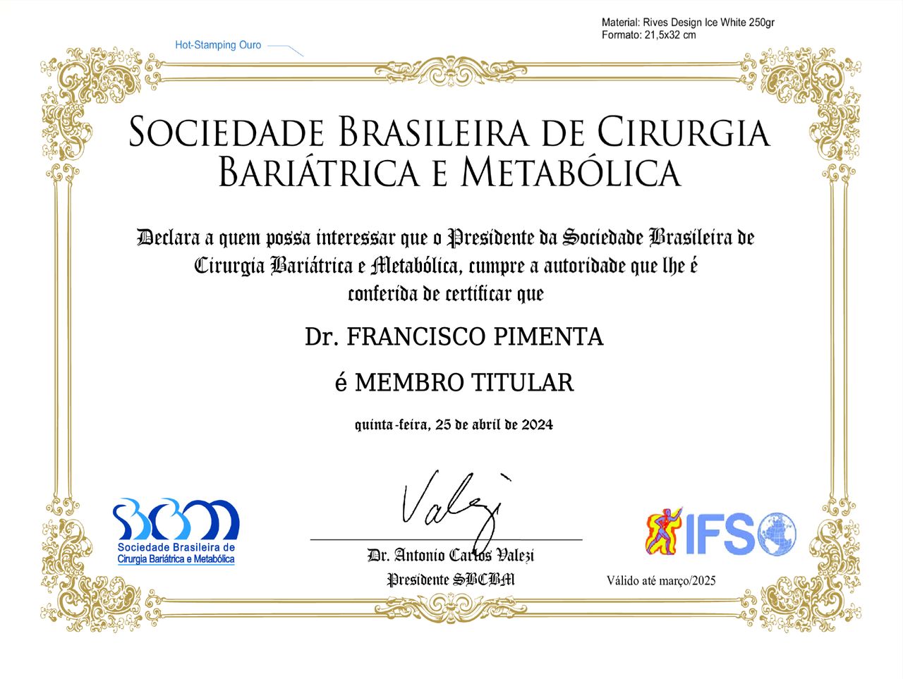 Gostaria de expressar minha profunda gratidão ao Dr. Francisco Pimenta pela atenção, dedicação e profissionalismo durante todo o meu tratamento e cirurgia. Sua competência e cuidado fizeram toda a diferença na minha recuperação. Muito obrigada por tudo!