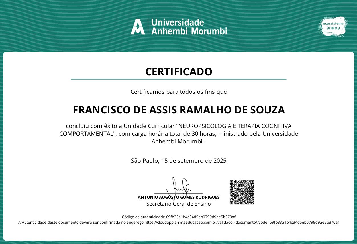 As sessões com o Dr. Francisco Ramalho foram essenciais para a evolução do meu tratamento com ansiedade e depressão, assim como para reavaliação de hábitos e comportamentos que, direta e/ou indiretamente, afetavam a minha saúde mental. O tratamento tem sido promissor e sou muito grato à dedicação e comprometimento do Dr. Francisco!