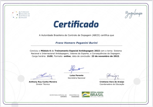 Número de registro: CRM SP 106.509 I RQE Méd. do esporte 91737 | RQE Esp. em Med. Prev. 91738