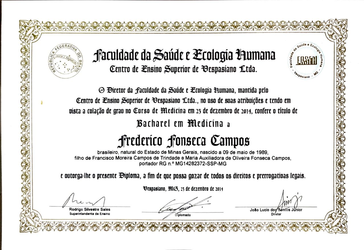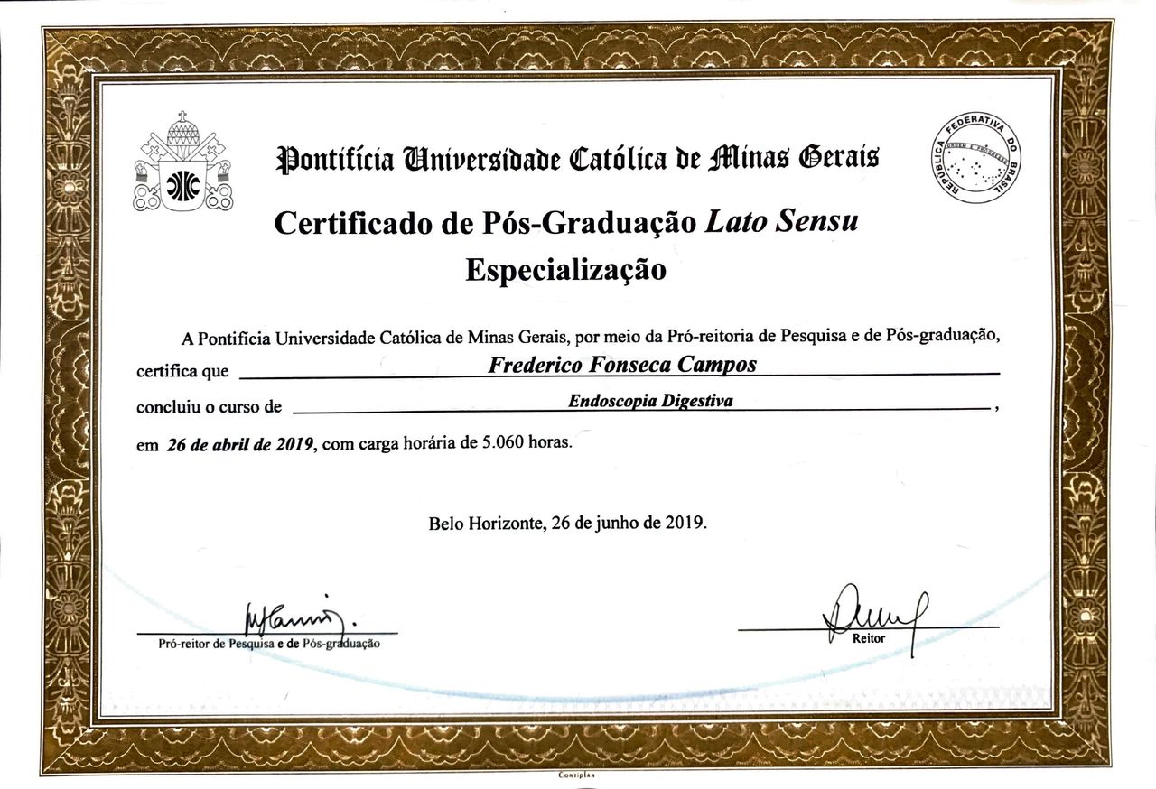 Diretor técnico e sócio fundador da Clinica GastroProcto. Médico coordenador do serviço de CPRE e gastroeterologia do Hospital Municipal Santa Isabel. Coordenador do serviço hospitalar de endoscopia digestiva e colonoscopia do Hospital Nossa Senhora das Neves - HNSN - Rede D'or. Corpo clínico do Hospital Edson Ramalho - CPRE. Coodenador serviço de endoscopia hospital Clinepa. Médico endoscopista com área de atuação em gastroenterologia. Formado pelo Instituto alfa de gastroenterologia Hospital das Clínicas - UFMG (2019 -2020) e Centro de Treinamento da SOBED - Hospital Madre Teresa (2017-2019) com ênfase em colangiopancreatografia endoscópica retrógrada (CPRE) , Ecoendoscopia e endoscopia terapêutica. Ganhador do primeiro prêmio Boston Scientific Brasil - Sobre prevenção coloretal. Fundador do aplicativo "endoscopia digestiva". Cirurgião pela Santa Casa de Misericórdia de BH com área de atuação de CPRE no período de formação. Estágio em cirurgia do trauma pelo Hospital Pronto Socorro João XXIII. Graduado em Medicina pela - MG, em 2014. Tem amplas experiência na área de endoscopia e colonoscopia com foco em cirurgias endoscópicas avançadas (endoscopia intervencionista e ecoendoscopia).