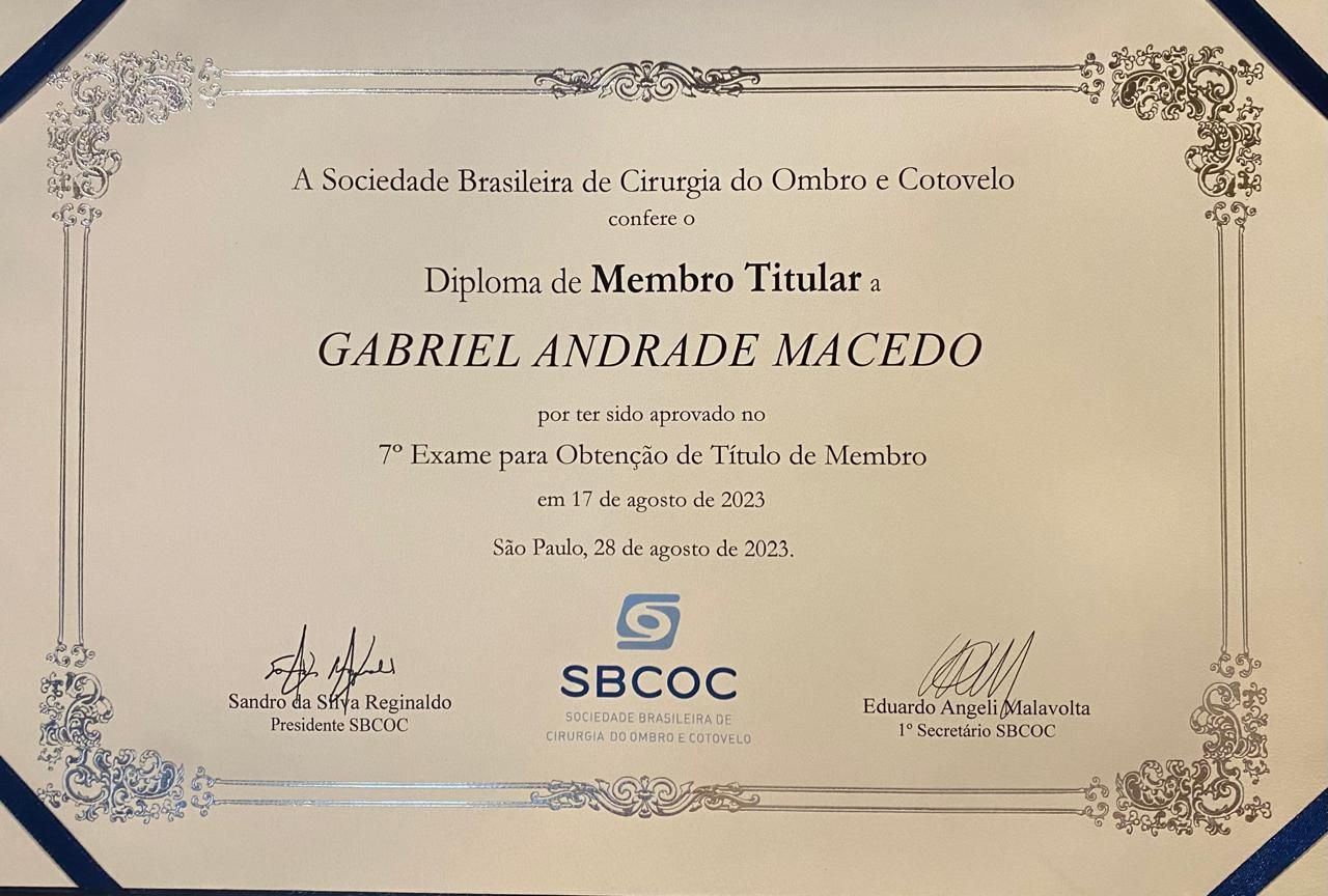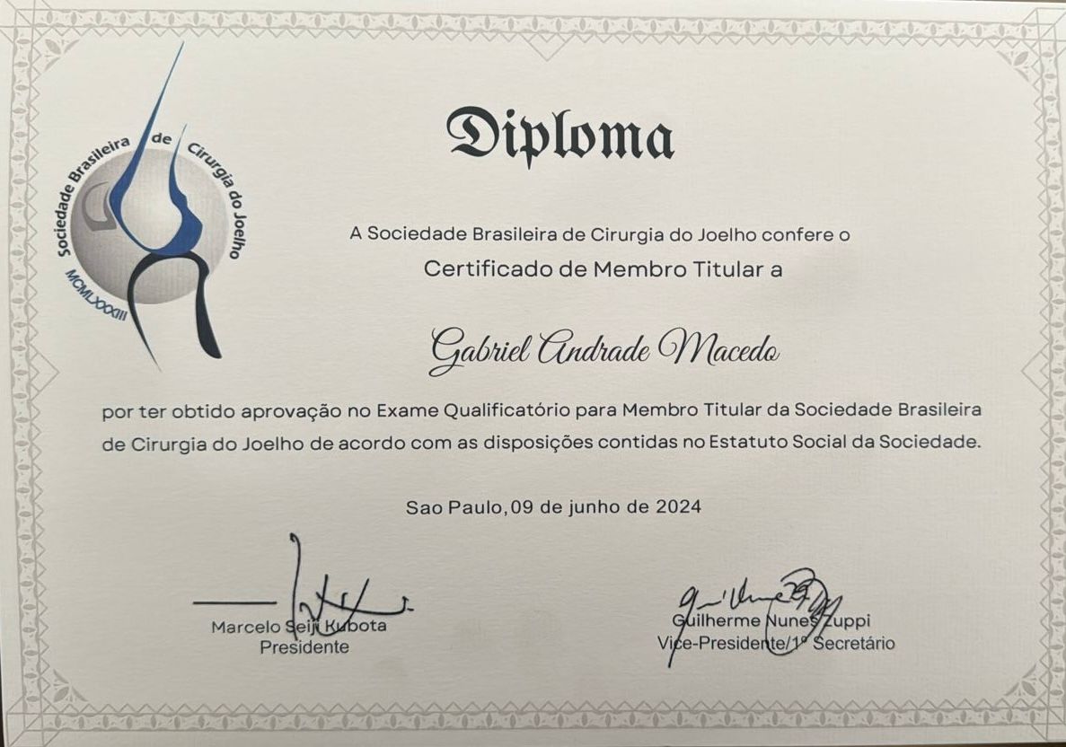 Quais são as principais especialidades de Gabriel Andrade Macedo?Gabriel Andrade Macedo é ortopedista - traumatologista. Te mostramos alguns dos serviços oferecidos pelo especialista graças à sua trajetória e vasta experiência: Primeira consulta medicina esportiva, Consulta particular, Meniscectomia, Consulta de retorno, Artrotomia Do Joelho, Artroscopia Cirurgica Do Joelho, Artrocentese Do Joelho, Artroscopia , Artroscopia do ombro , Tratamento Cirurgico De Luxacao Ou Fratura Luxacao De Joelho.