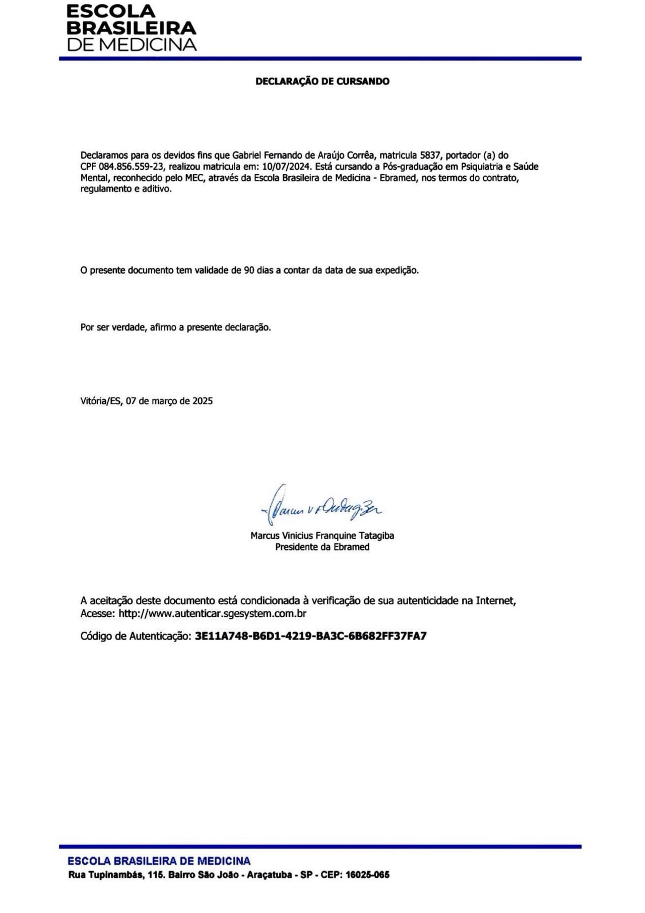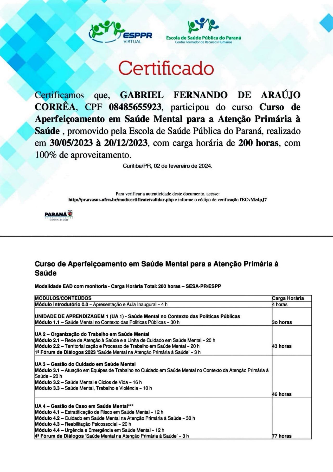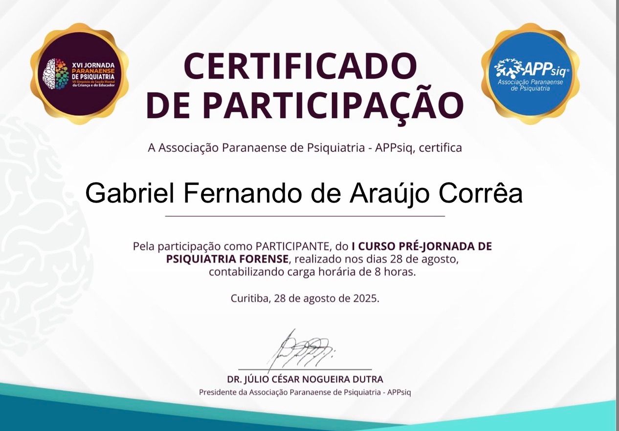 Sou Médico De Família E Comunidade - Membro Da Sociedade Brasileira De Medicina De Família E Comunidade E Associação Brasileira E Paranaense De Psiquiatria; Pós-Graduado Em Psiquiatria E Saúde Mental Pela Faculdade Brasileira De Medicina (SP, 2025) E Em Saúde Mental Com Ênfase Na Atenção Primaria De Saúde Pela Escola De Saúde Pública Do Paraná(SESA, 2023);
