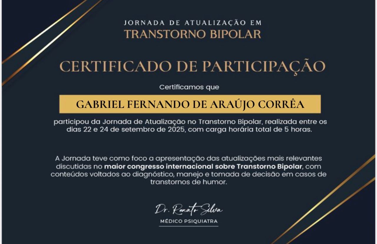Especializando Em Transtorno Do Humor E Aperfeiçoamento Profissional Em Psicofarmacologia.