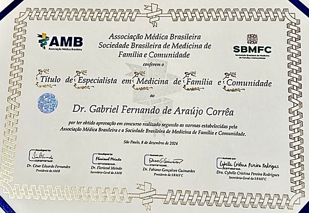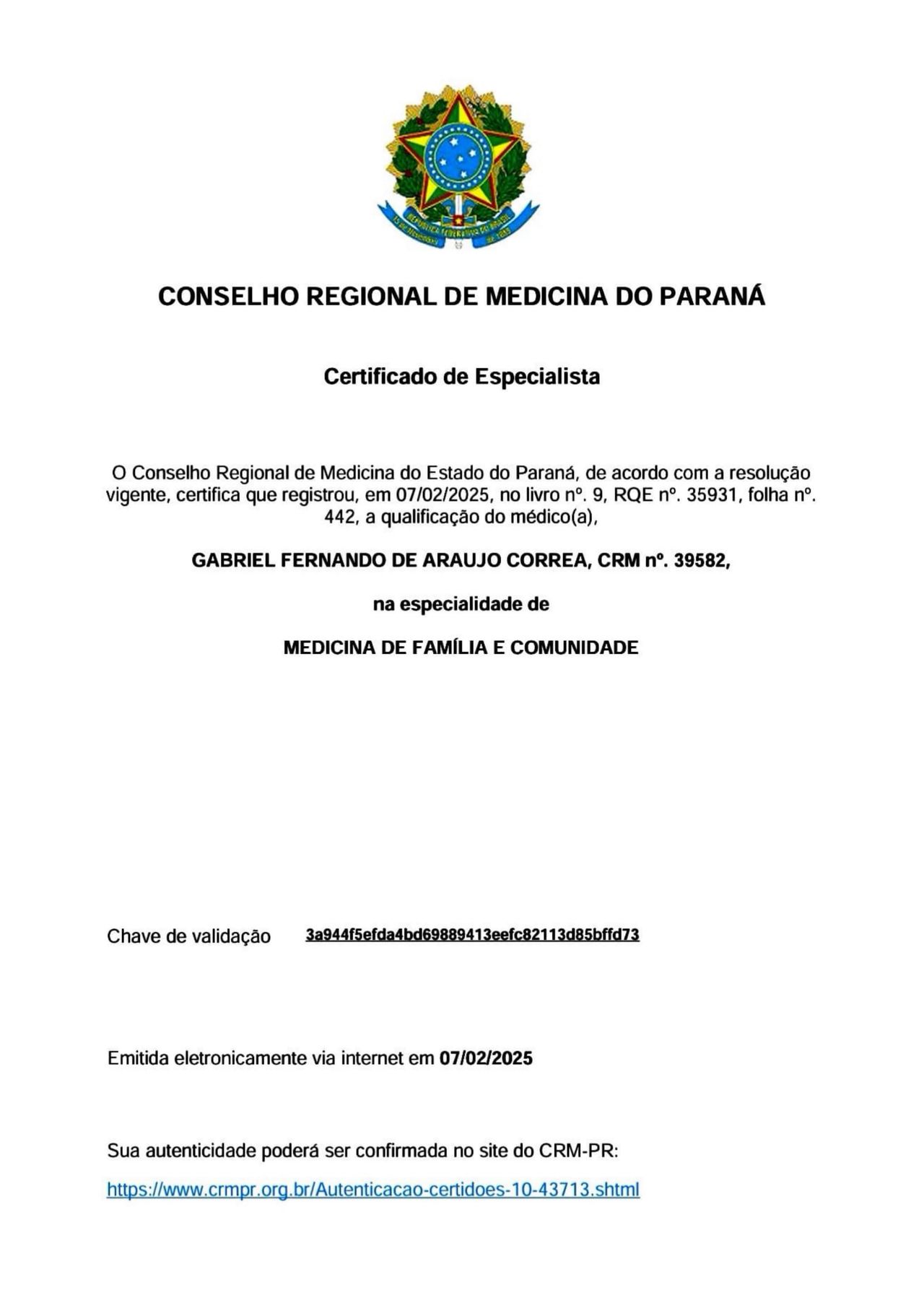Número de registro: CRM PR 39582 - RQE Nº: 35931 (Medicina de família)