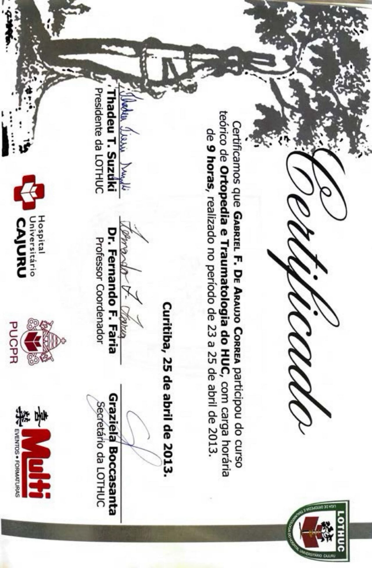 Você já passou por consulta com Dr. Gabriel Fernando De Araújo Corrêa ? Conte aqui como foi. Outros pacientes vão te agradecer por ajudá-los a escolher o melhor especialista.