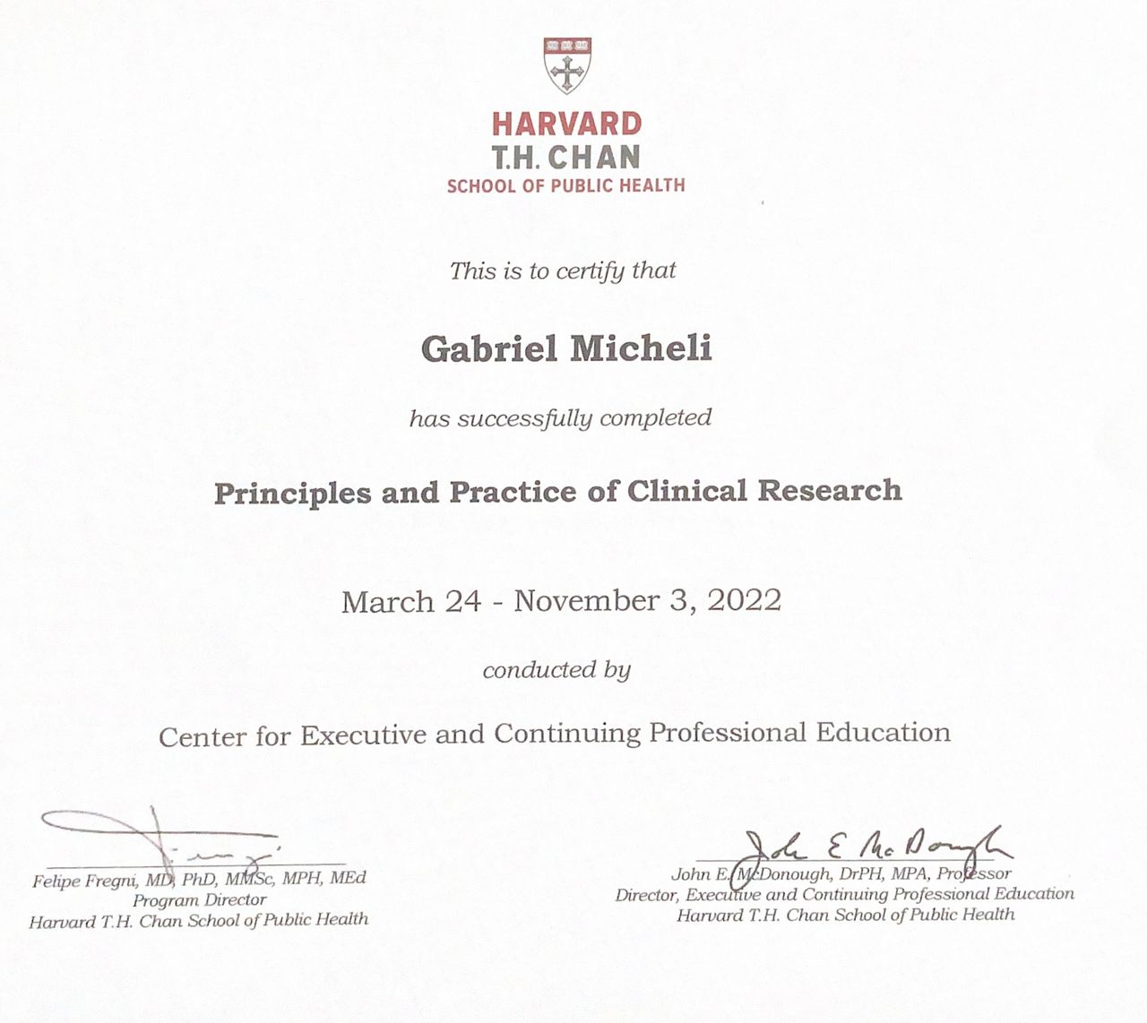 Meu interesse em novos tratamentos me levou a buscar minha pós Graduação em pesquisa clínica pela Harvard School of Public Health e atualmente estou concluindo o Mestrado em pesquisa clínica pela Universidade de Dresden, Alemanha.
