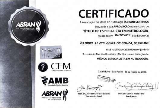 Nutrólogo com título de especialista pela ABRAN/AMB - RQE nº 48060