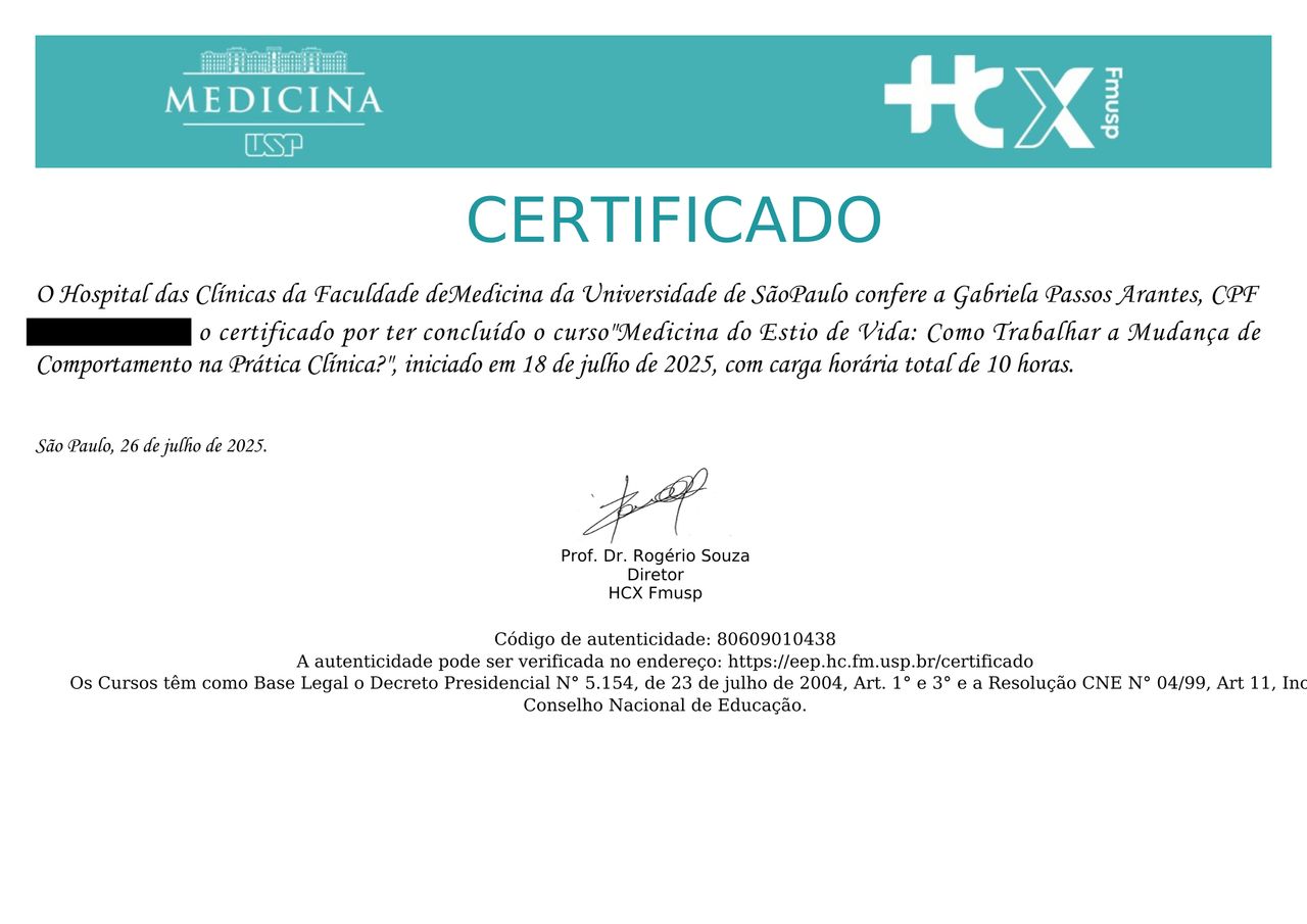 Formei-me em Medicina pela Universidade de Santo Amaro e concluí minha residência em Clínica Médica no Hospital Municipal do Tatuapé. Atualmente sigo me especializando em Gestão em Saúde e em Obesidade e Controle do Peso, áreas que me permitem oferecer um cuidado atualizado e completo.