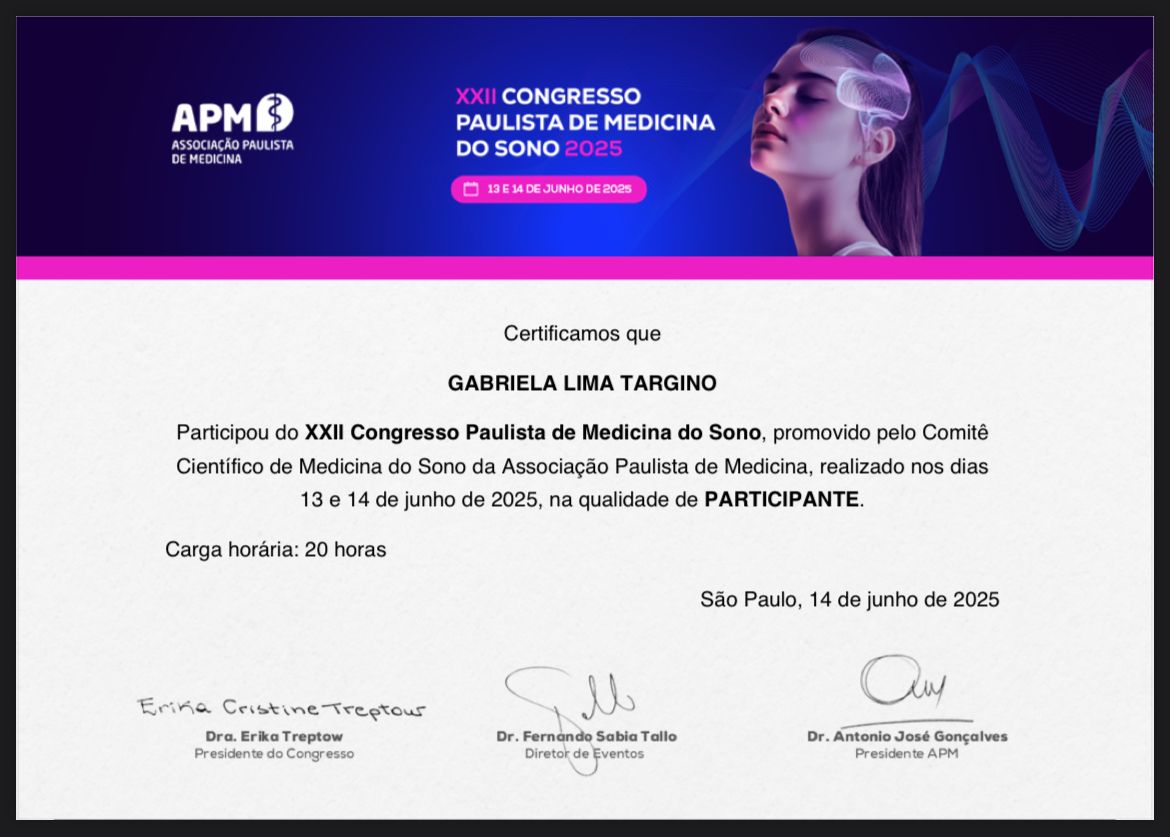 Tenho capacitação em Sono e abordagens integrativas, e meu foco é transformar a qualidade de vida dos meus pacientes por meio de diagnósticos precisos e tratamentos personalizados.
