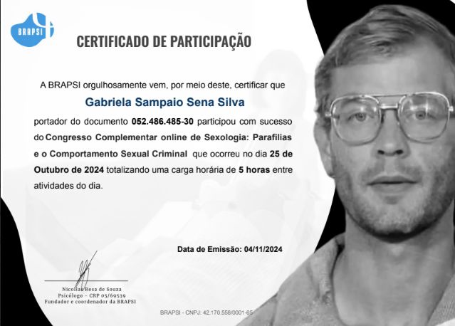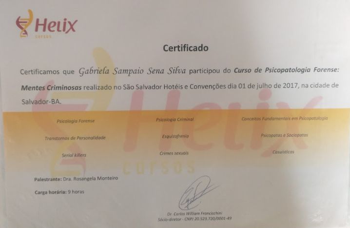 Tenho pós graduação em Psicologia Clinica, Gestalt-terapia, em Terapia de Casal e Familiar. Atualmente estou na graduação em Estudos de Gênero e Diversidade e na em Terapia Cógnito Sexual.