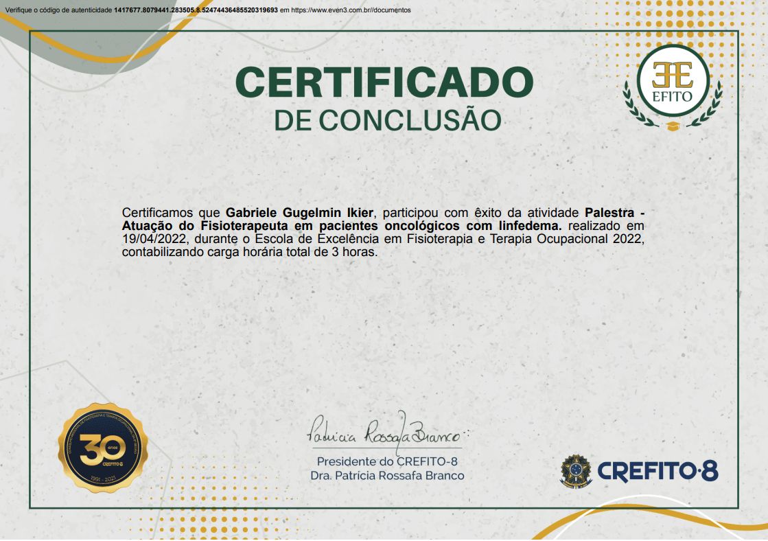 Quando poderia me consultar com Gabriele Gugelmin Ikier?Gabriele Gugelmin Ikier costuma ter horários disponíveis dentro da mesma semana ou para a semana seguinte. Verifique o calendário: você verá o primeiro horário disponível, atualizado em tempo real. Caso o horário sugerido não funcione para você, verifique outras datas. Agendar uma consulta é sempre imediato e gratuito.