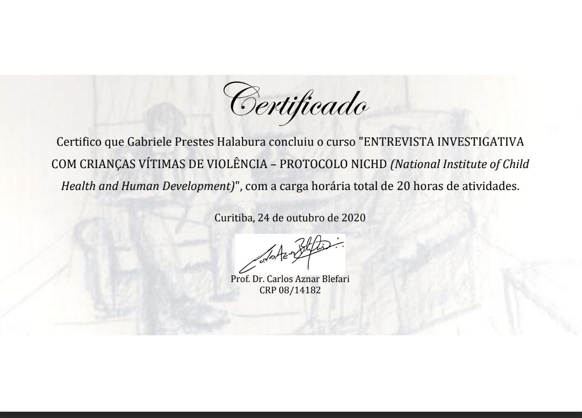 Quais são as principais especialidades de Gabriele Prestes Halabura?Gabriele Prestes Halabura é psicóloga. Te mostramos alguns dos serviços oferecidos pelo especialista graças à sua trajetória e vasta experiência: Teleconsulta, Psicoterapia online, Tratamento da ansiedade, Tratamento da fobia social, Tratamento da síndrome do pânico, Tratamento para abuso sexual, Tratamento para relacionamento abusivo, Tratamento para transtorno da ansiedade generalizada (TAG), Tratamento para relacionamentos, Tratamento para baixa autoestima.