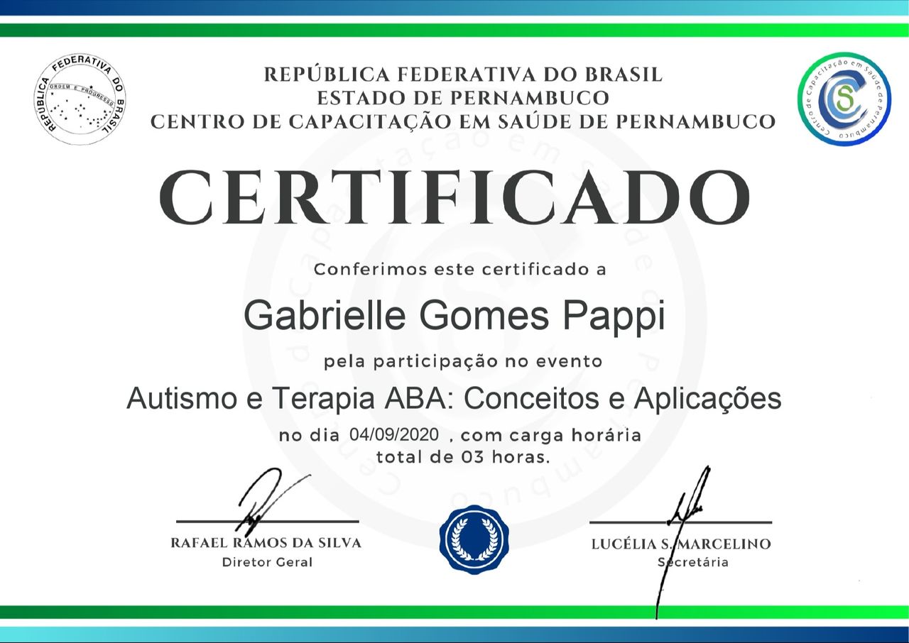 Quais são as principais especialidades de Gabrielle Gomes Pappi?Gabrielle Gomes Pappi é psicóloga. Te mostramos alguns dos serviços oferecidos pelo especialista graças à sua trajetória e vasta experiência: Teleconsulta, Atendimento Online em Psicoterapia, Consulta Psicologia, Consulta psicológica do adolescente, Consulta psicológica do adulto, Consulta psicológica do idoso, Primeira consulta psicologia, Terapia Cognitivo Comportamental, Atendimento Psicológico online para adulto, Terapia online.