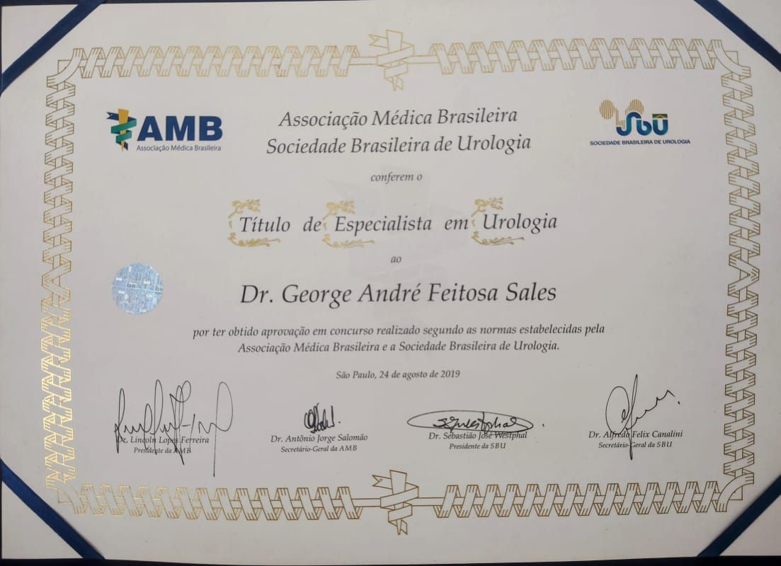 Quais são as principais especialidades de George André Feitosa Sales?George André Feitosa Sales é urologista, cirurgião geral. Te mostramos alguns dos serviços oferecidos pelo especialista graças à sua trajetória e vasta experiência: Retorno de consultas Urologia, Vasectomia, Cirurgia para cálculo renal, Tratamento Cirurgico Da Varicocele, Avaliação pré-operatória, Check up, Tratamento Cirurgico da Hidrocele, Primeira consulta Urologia, Consulta particular, Ressecção Endoscopica Da Prostata.