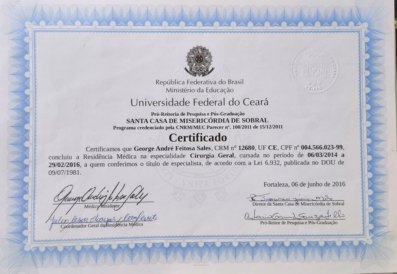 Cirurgião Geral no Hospital Distrital Edmilson Barros de Oliveira (SMS - Fortaleza/CE);