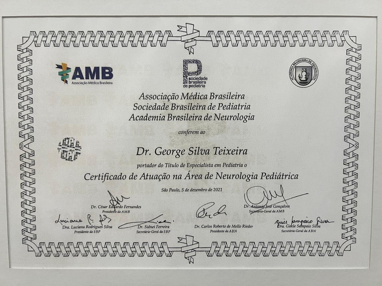 Quais são as principais especialidades de George Teixeira?George Teixeira é neurologista pediátrico, pediatra.