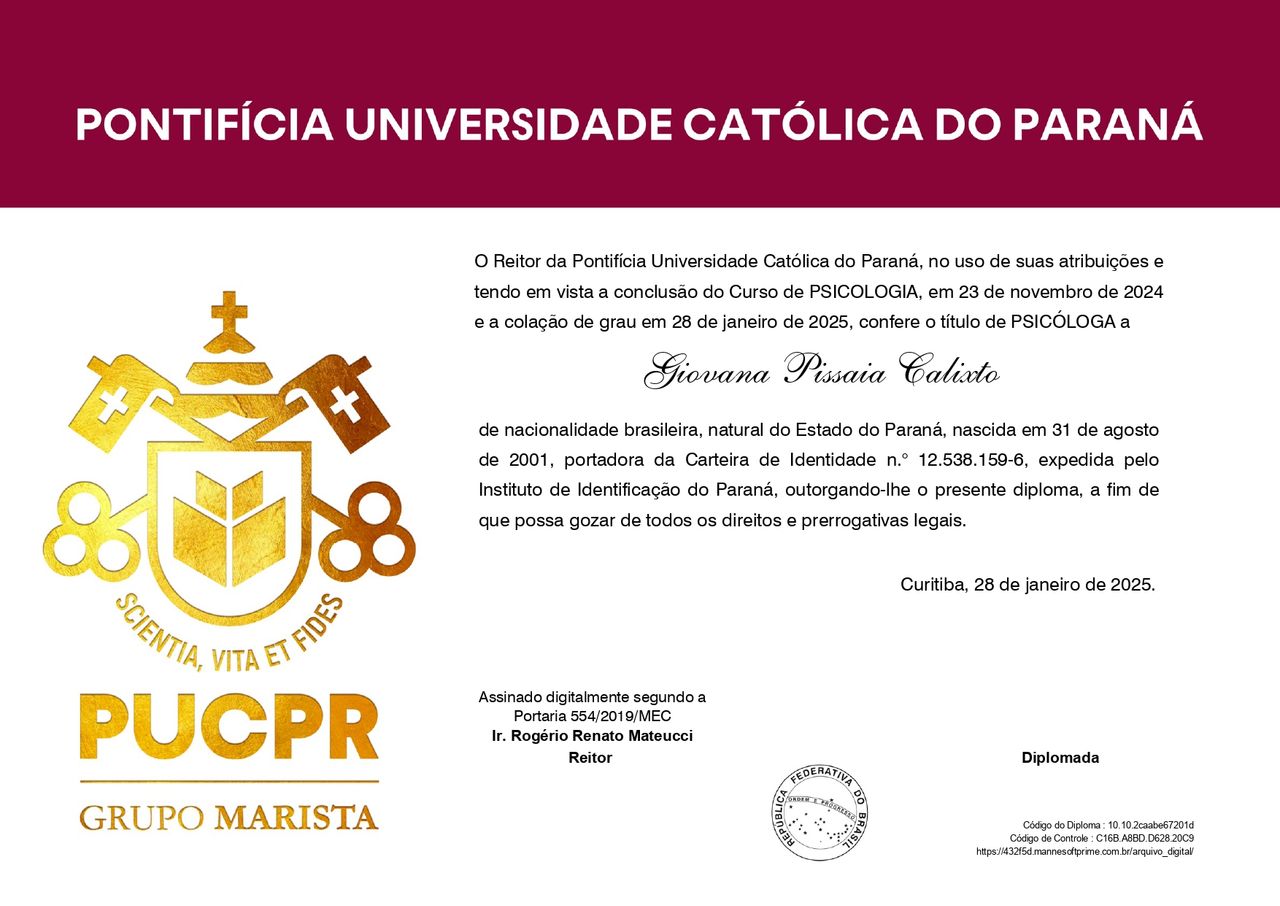 Sou formada em Psicologia pela Pontifícia Universidade Católica do Paraná - PUCPR.