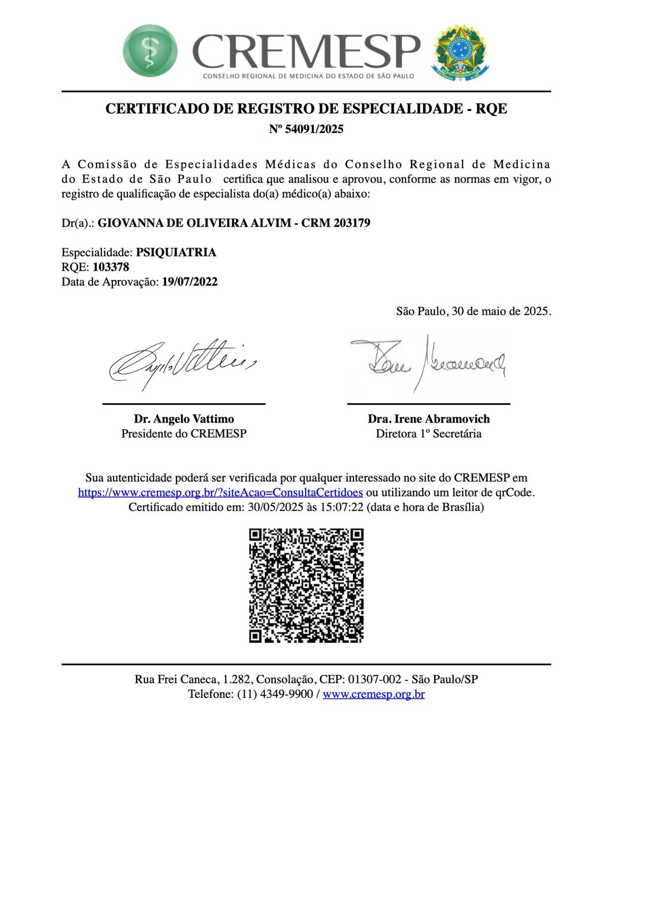 Dra Giovanna, sempre muito atenciosa e com paciência para escutar!