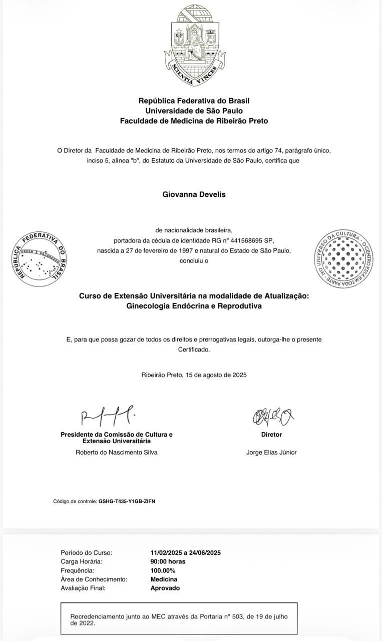 Especialista em Ginecologia e ObstetríciaResidência Médica: Universidade de Ribeirão PretoHumanização, Pontualidade, Acolhimento, Empatia