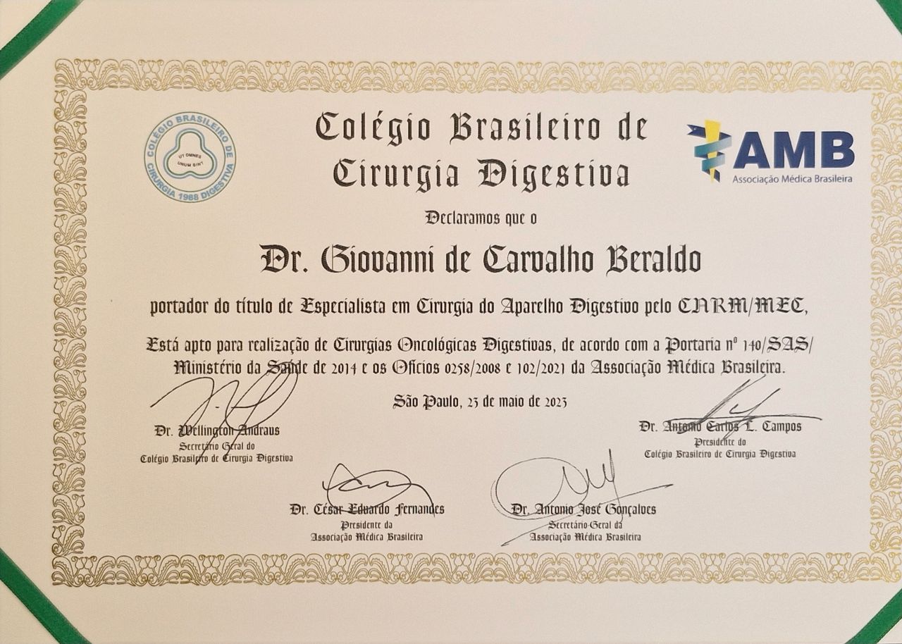 Meu nome é Giovanni de Carvalho Beraldo, médico graduado pela Faculdade de Ciências Médicas da UNICAMP em 2011, residência médica em Cirurgia Geral e Cirurgia do Aparelho Digestivo também pela UNICAMP. Atualmente, sou professor da faculdade de medicina da UNIFAJ e realizo atendimentos em consultório nas cidades de Campinas e Jaguariúna, além de cirurgias que compreendem tanto a área de Cirurgia Geral, quanto àquelas que abrangem todo Aparelho Digestivo.