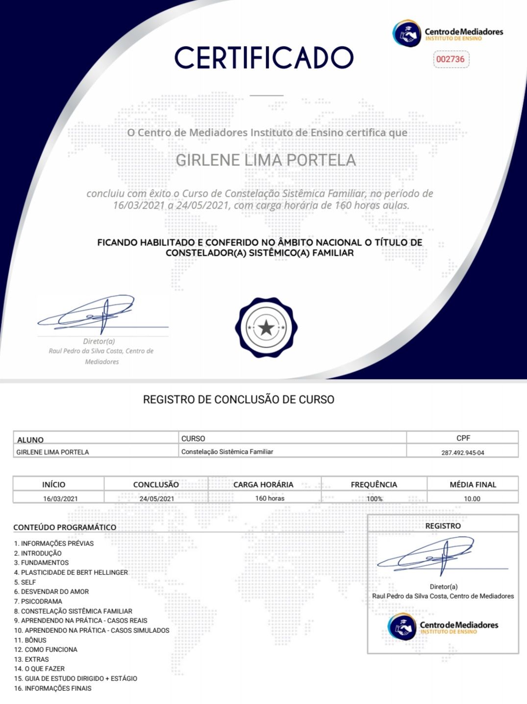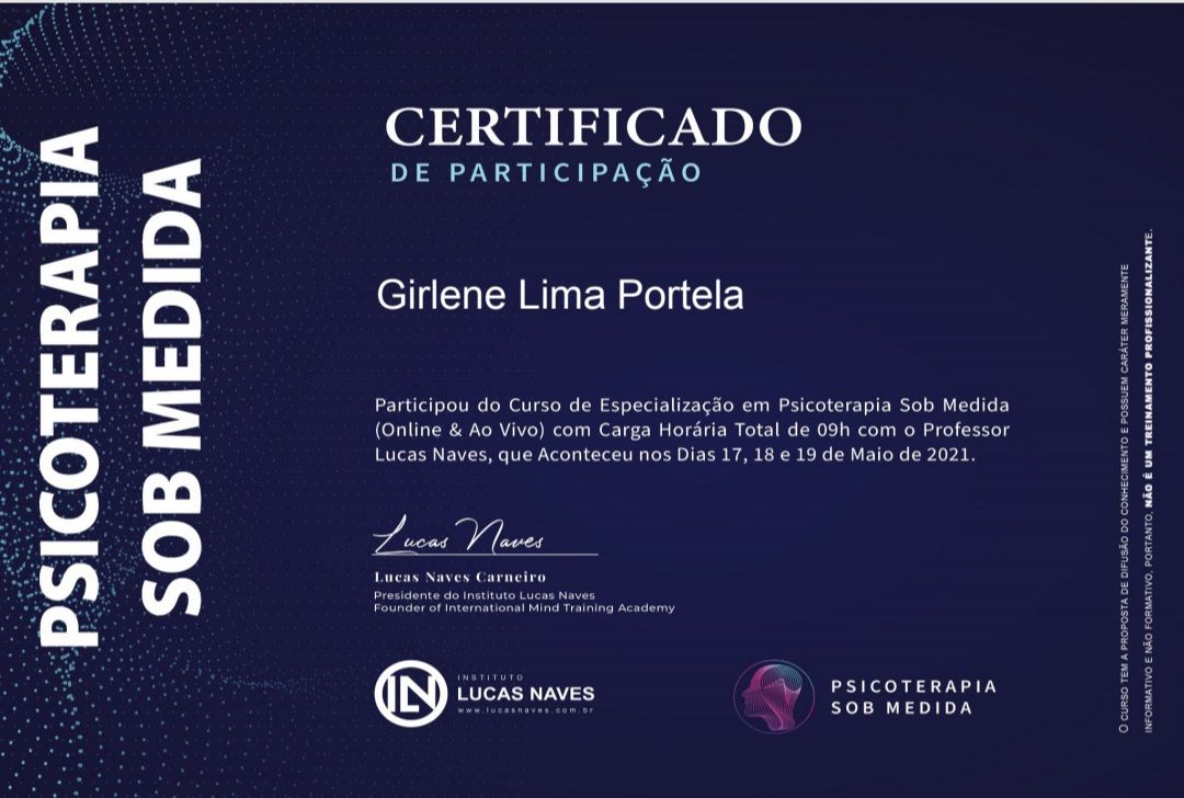 Cada consulta com a doutora Girlene Portela tem sido surpreendente, pois consigo acessar sentimentos, emoções e lembranças que nem imaginava existir em mim. Ela conduz o processo com tanta sabedoria que me sinto completamente à vontade para me abrir e compartilhar. A cada encontro, a doutora sempre traz uma palavra fundamentada, cientificamente comprovada, mostrando sua inteligência e dedicação. É inspirador perceber como cada sessão me transforma, trazendo mais clareza e equilíbrio. Aguardo ansiosamente por cada novo encontro.