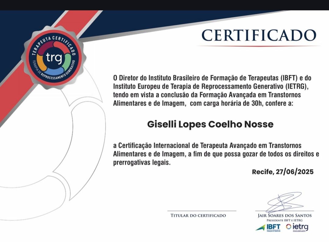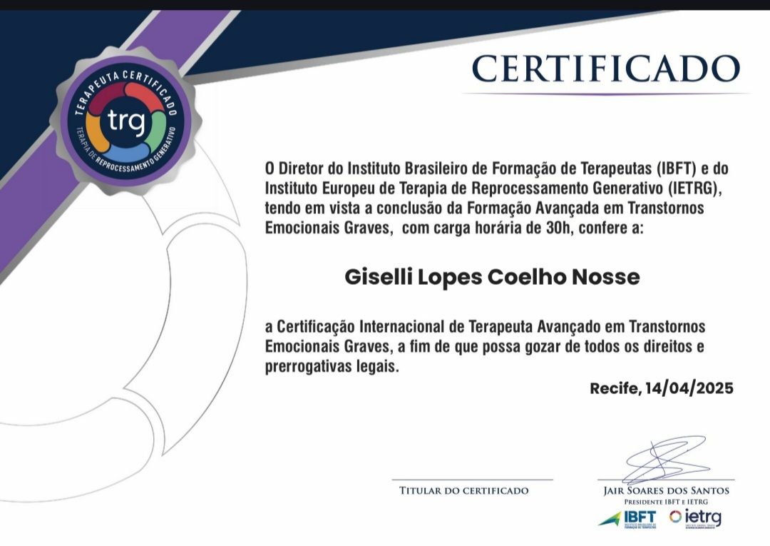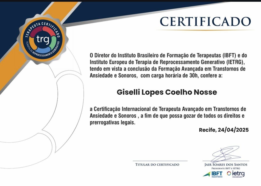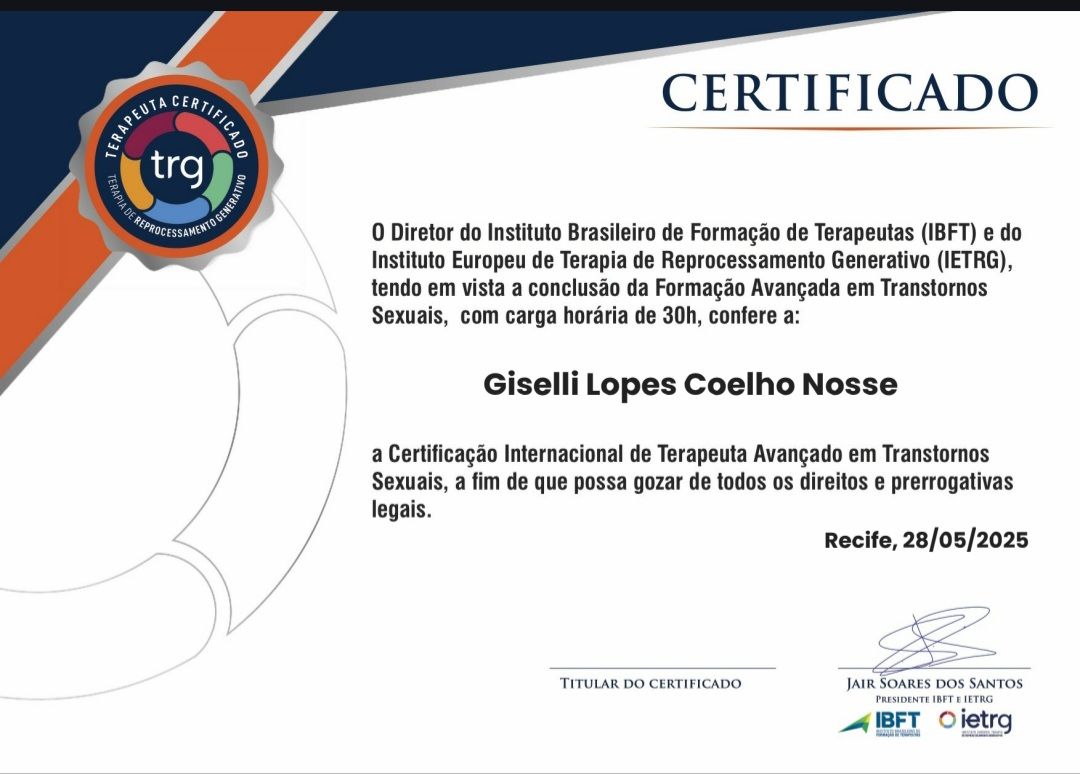 Atenciosamente Giselli Lopes Master Terapeuta TRG