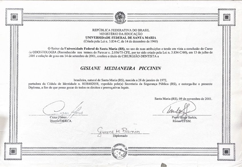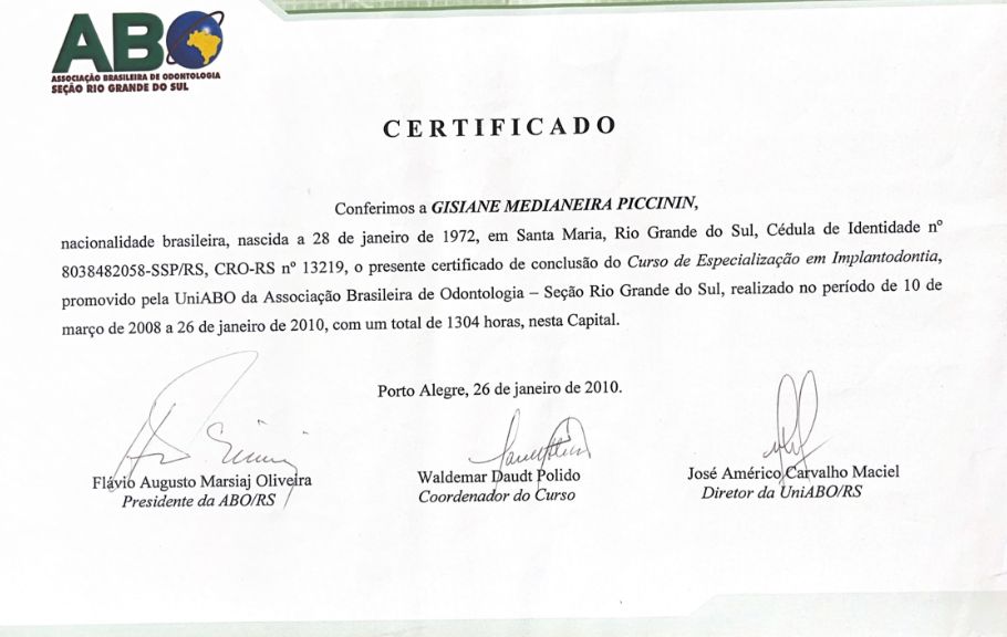Em 2002 fui embora para Porto Alegre - RS onde fiz três especializacões em Implantodontia, em Prótese Dentária e em Harmonização orofacial.