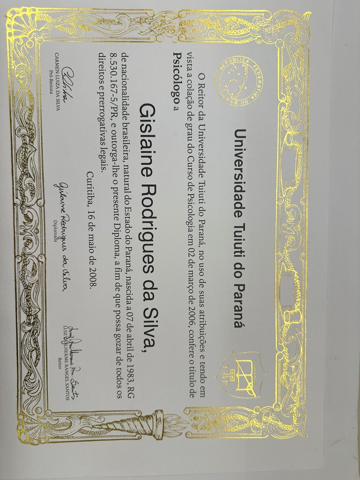 Trabalho excelente, estou muito satisfeita com a terapia. A Gislaine tem me ajudado muito, estou me recuperando de uma depressão e certamente ela fez diferença no meu processo. Recomendo.
