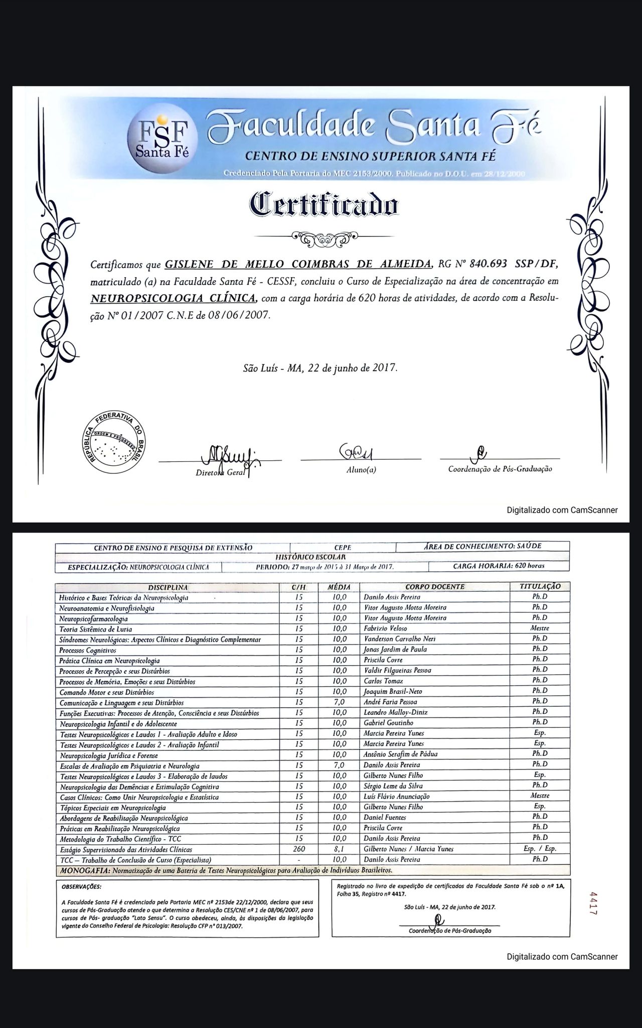 Após sofrer uma depressão grave e crises de ansiedade sem melhora com medicamento, descobri a Dra Gislene Coimbras, que além de psicóloga utiliza uma técnica inovadora com neuromodulação e neuro feedback, iniciei o tratamento com ela como psicóloga utilizando essa técnica e mesmo quando fiquei em outro estado, mantive atendimento on line (quando necessitei) foi essencial para a melhora do quadro depressivo e melhorou muito minha saúde mental. Sou muito grata por essa profissional competente.