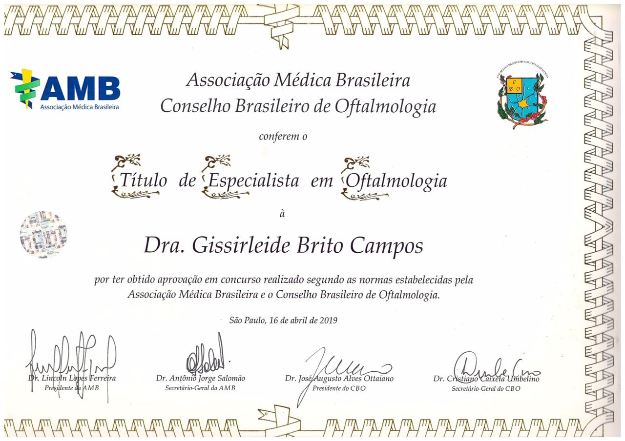 Quais são as principais especialidades de Gissirleide Campos?Gissirleide Campos é oftalmologista. Te mostramos alguns dos serviços oferecidos pelo especialista graças à sua trajetória e vasta experiência: Consulta Oftalmologia.