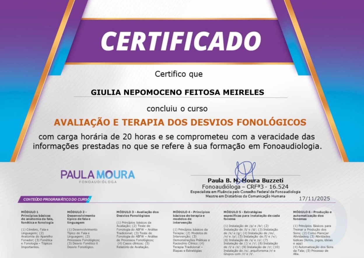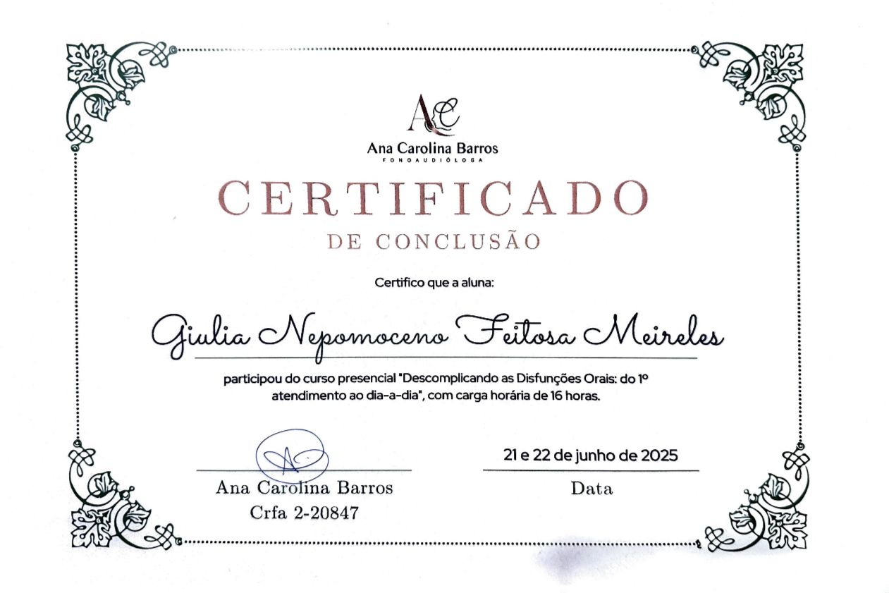 Meu nome é Giulia Nepomoceno, sou Fonoaudióloga formada pela Universidade de Brasília (UnB).