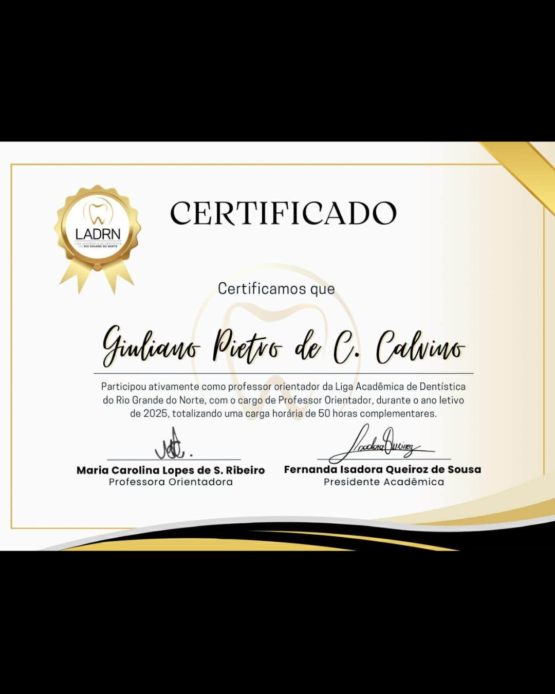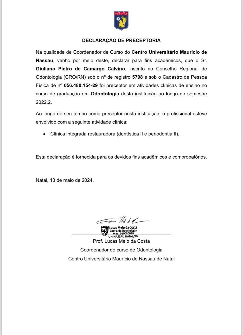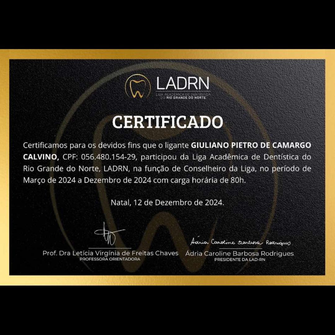 Professor orientador na liga acadêmica de dentística do RN