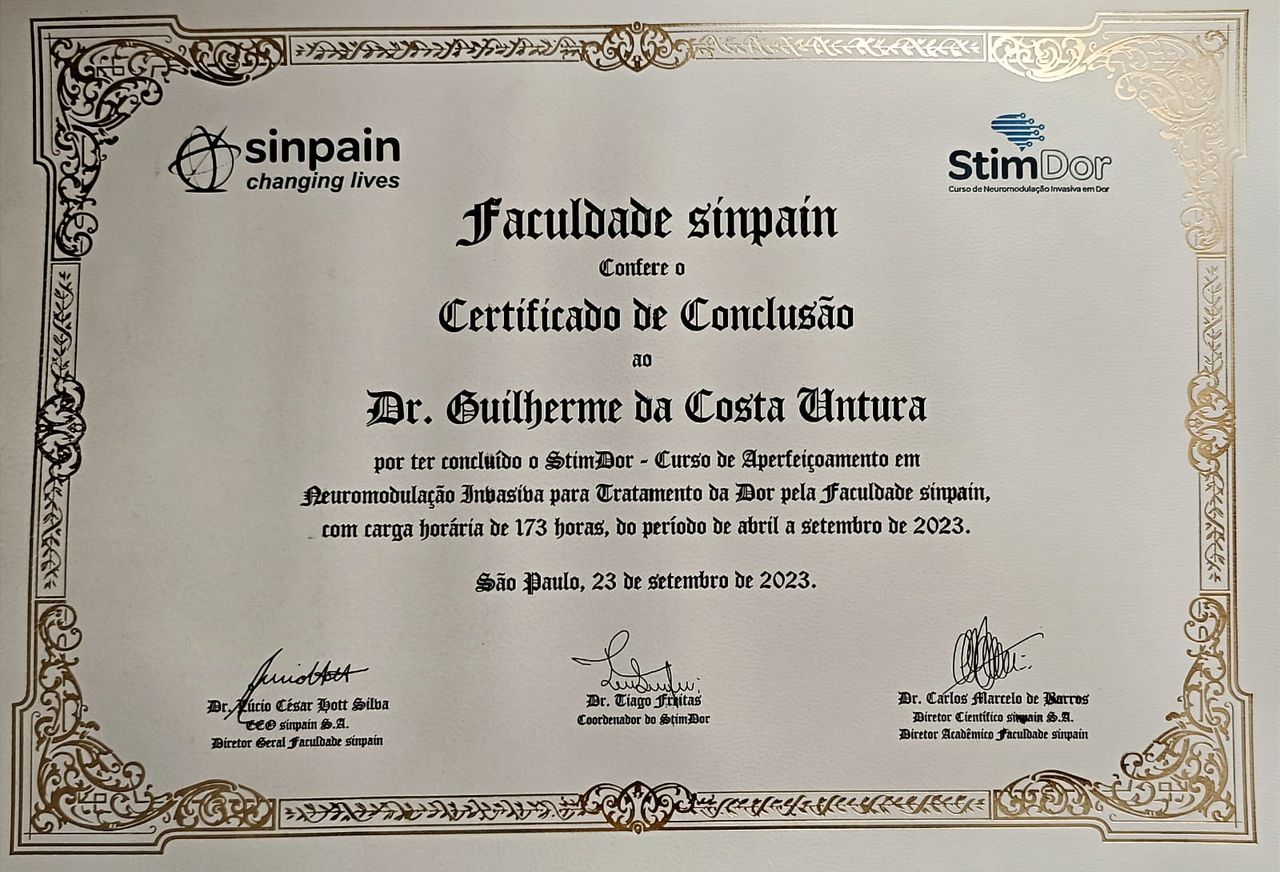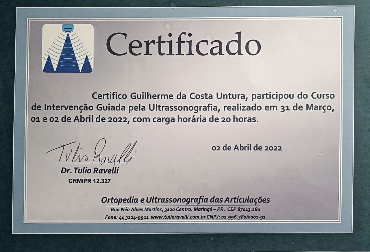 Quais são as principais especialidades de Guilherme Da Costa Untura ?Guilherme Da Costa Untura é ortopedista - traumatologista. Te mostramos alguns dos serviços oferecidos pelo especialista graças à sua trajetória e vasta experiência: Primeira consulta ortopedia e traumatologia, Tratamento de osteoporose, Liberação miofascial, Infiltração Foraminal, Viscossuplementação, Tratamento para dor crônica, Bloqueio de dor, Infiltração da coluna, Infiltração no Ombro, Infiltração de substâncias em cavidade sinovial (articulação).