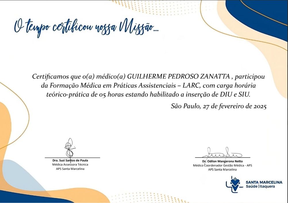 Quais são as principais especialidades de Guilherme Pedroso Zanatta?Guilherme Pedroso Zanatta é generalista. Te mostramos alguns dos serviços oferecidos pelo especialista graças à sua trajetória e vasta experiência: Tratamento de obesidade, Consulta médica, Inserção do DIU hormonal, Consulta clínica médica, Consulta generalista.