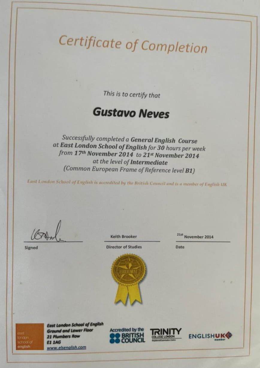 Em quais idiomas Gustavo Neves atende?Gustavo Neves atende em Inglês, Português.