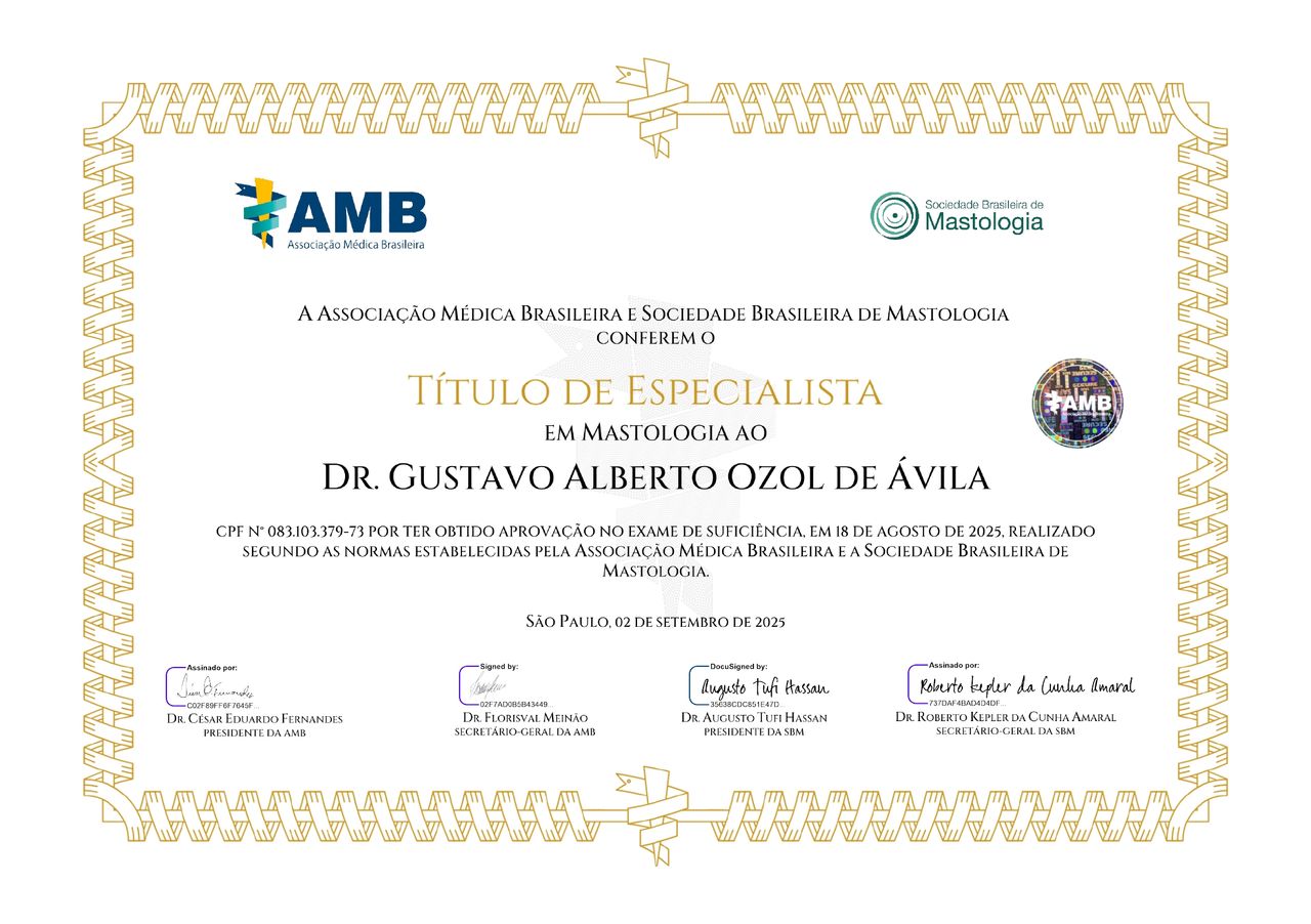 Sou médico mastologista com atuação dedicada ao cuidado da saúde das mamas e foco na prevenção, diagnóstico precoce, tratamento e acompanhamento integral de doenças mamárias, incluindo o câncer de mama.