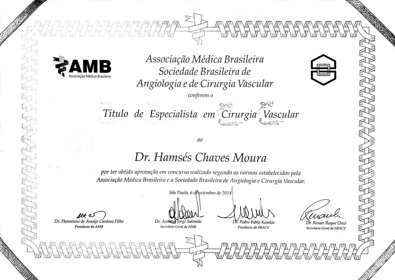 Quais são as principais especialidades de Hamses Chaves Moura?Hamses Chaves Moura é cirurgião vascular, angiologista. Te mostramos alguns dos serviços oferecidos pelo especialista graças à sua trajetória e vasta experiência: Consulta angiologia, Doppler colorido de carótidas e vertebrais, Escleroterapia com espuma, Consulta Cirurgia Vascular, Retorno de consultas Cirurgia Vascular, Escleroterapia, Doppler arterial colorido de membros inferiores, Doppler arterial colorido de membros superiores, Doppler colorido venoso de membros inferiores, Doppler colorido venoso de membros superiores.