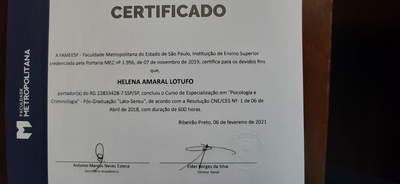 Psicóloga, 54 anos, 3 filhos e formada na PUC-SP, aprimoramento Clínico em atendimento de adolescentes e adultos com abordagem Humanista e a luz da Psicologia Analítica, além de especialização em Avaliação psicológica e psicologia e criminologia. Trabalho há 20 anos como Psicóloga na Fundação CASA de São Paulo atendendo adolescentes. Há 4 anos saí da cidade de São Paulo vindo residir em Sítio na cidade de Botucatu, buscando tranquilidade e contato com a natureza e iniciando atendimento Psicoterápico online neste santuário.