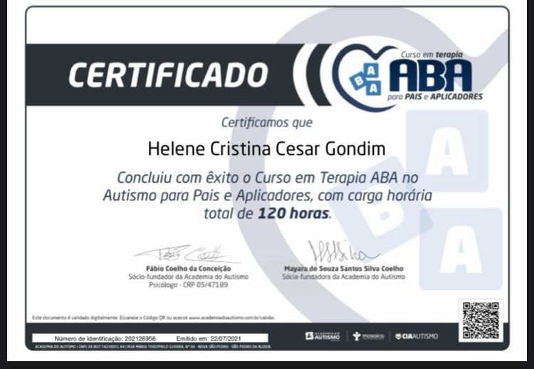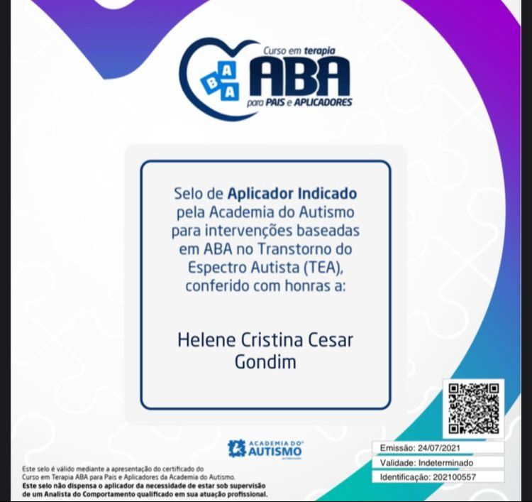Obrigada Mirian por confiar no meu trabalho. Alice tem muitos desafios pela frente e vamos tornar essa caminhada mais suave. Trabalhando juntas ela vai ter muito progresso! Abraços