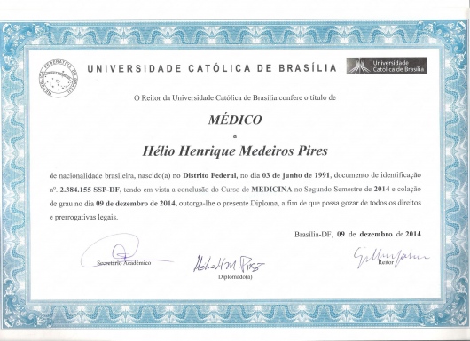 Formado em Medicina pela Universidade Católica de Brasília - CRM-DF 21590 Especialização/Residência Médica em Clínica Médica e Medicina Interna - RQE: 16401 Especialização/Residência Médica em Cardiologia - RQE: 17441 Especialização/Pós-graduação em Medicina Canabinoide Especialização/Pós-graduação em Cuidados Integrativos (Hospital Sìrio Libanês-SP) Especialização/Pós-graduação em Neurociências