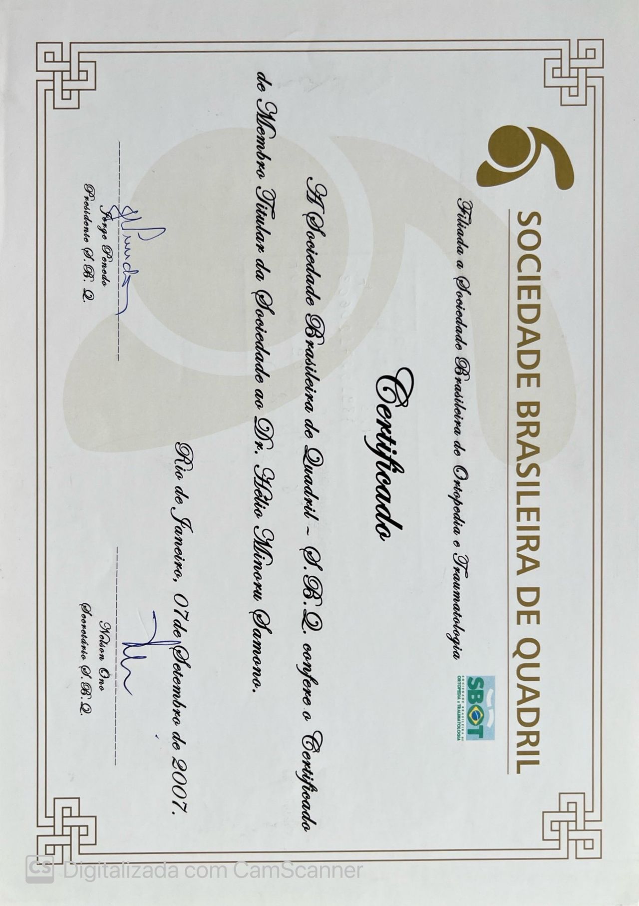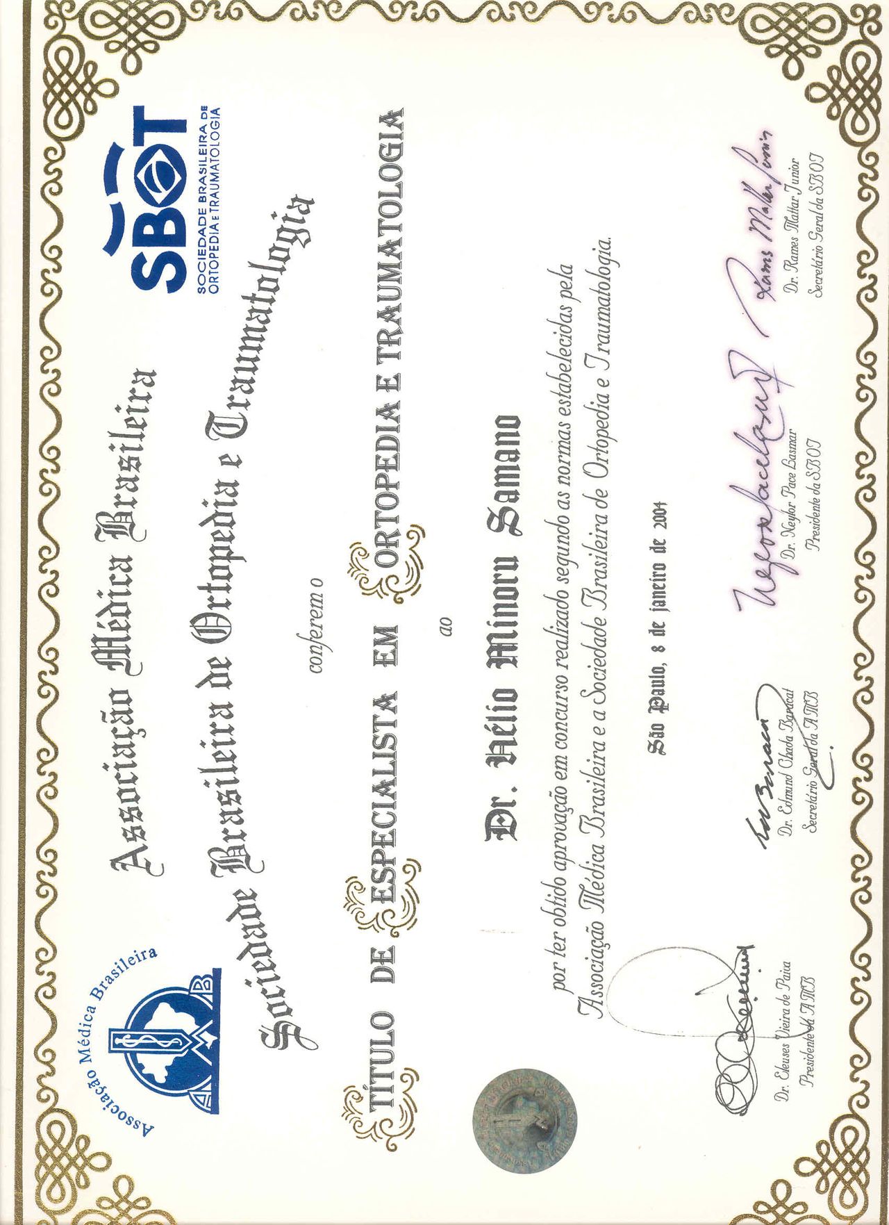 Graduado em Medicina pela Santa Casa de São Paulo, Residência Médica em Ortopedia no Pavilhão Fernandinho Simonsen ( Santa Casa SP), Membro titular da SBOT, Membro titular da SBQ.